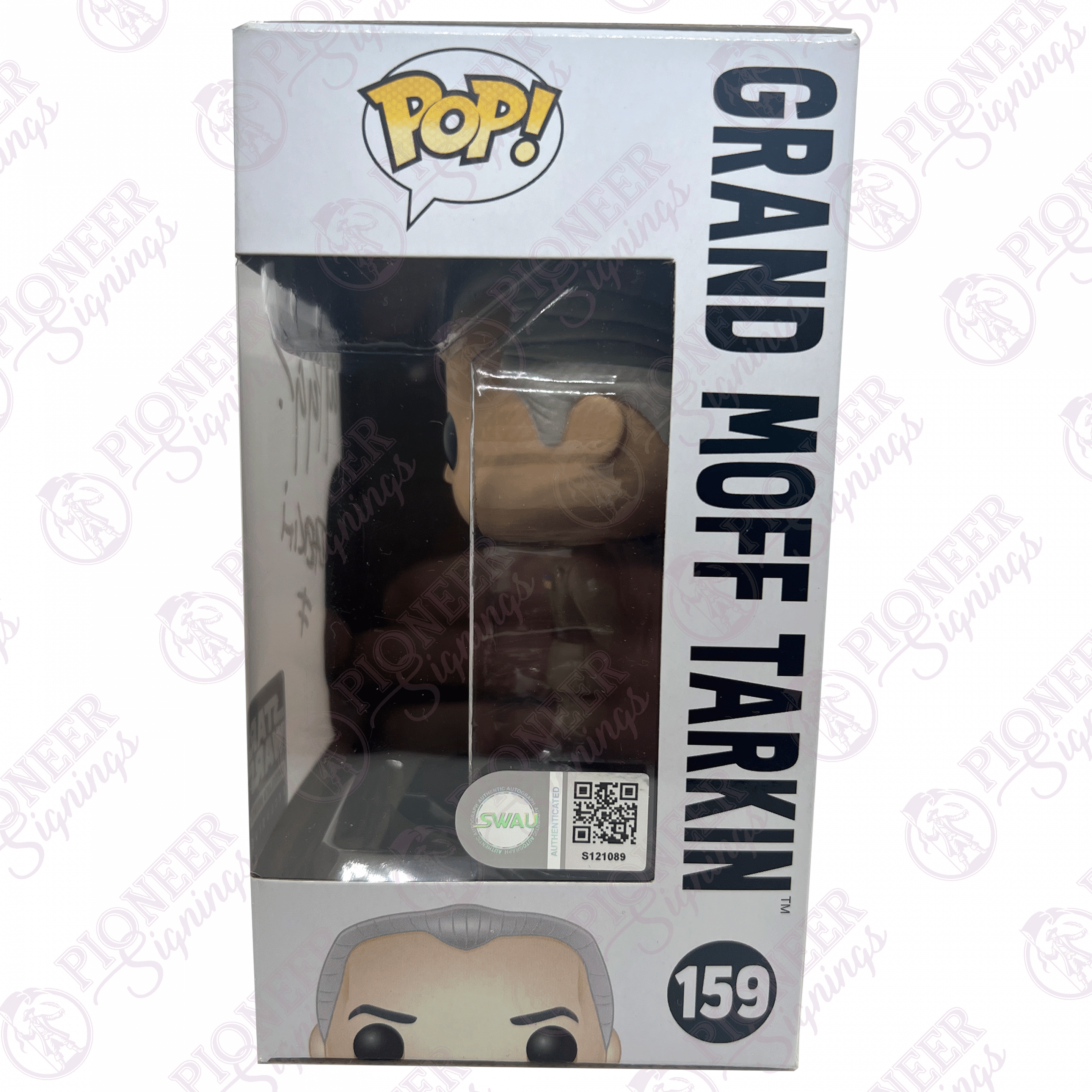 Discover STAR WARS Smuglers Bounty Exclusive “Grand Moff Tarkin” Funko Pop 159 with Character Name – Autographed by Wayne Pygram — perfect for Star Wars collectors and fans alike! – Pioneer Signings