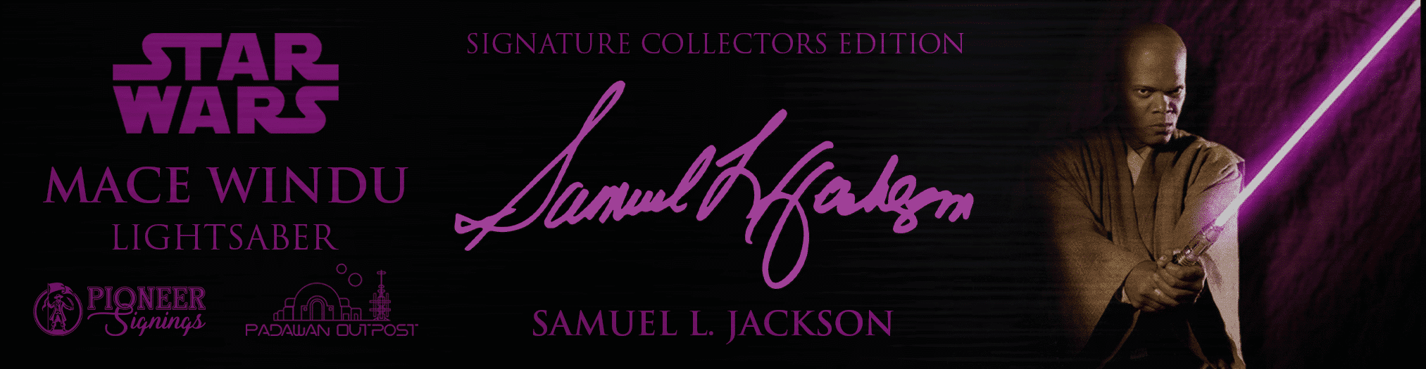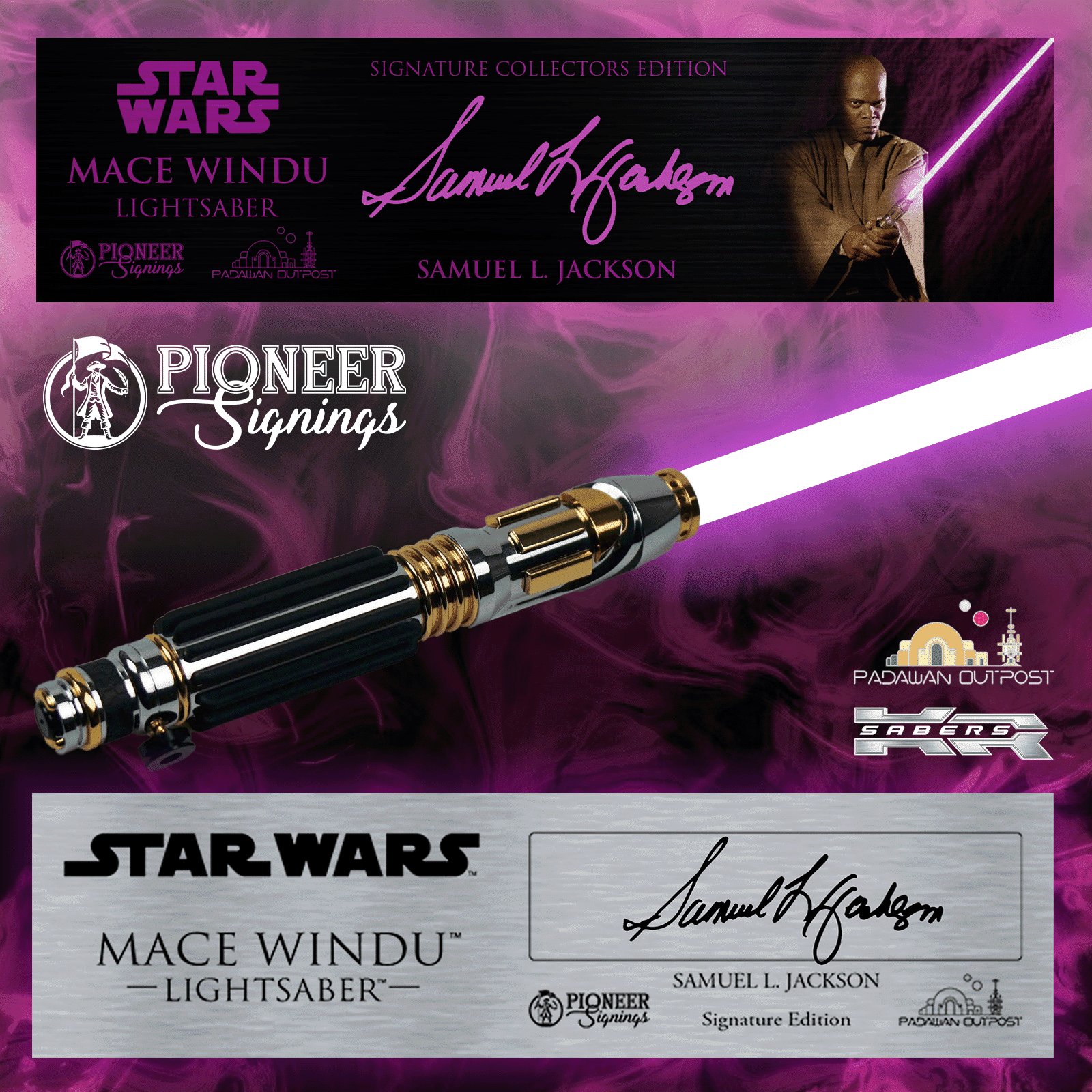 Pioneer Signings are delighted to be working with Padawan Outpost and KR Sabers to bring you this Samuel L Jackson Signature Collectors Edition Mace Windu–inspired Lightsaber from Star Wars: Prequel Trilogy