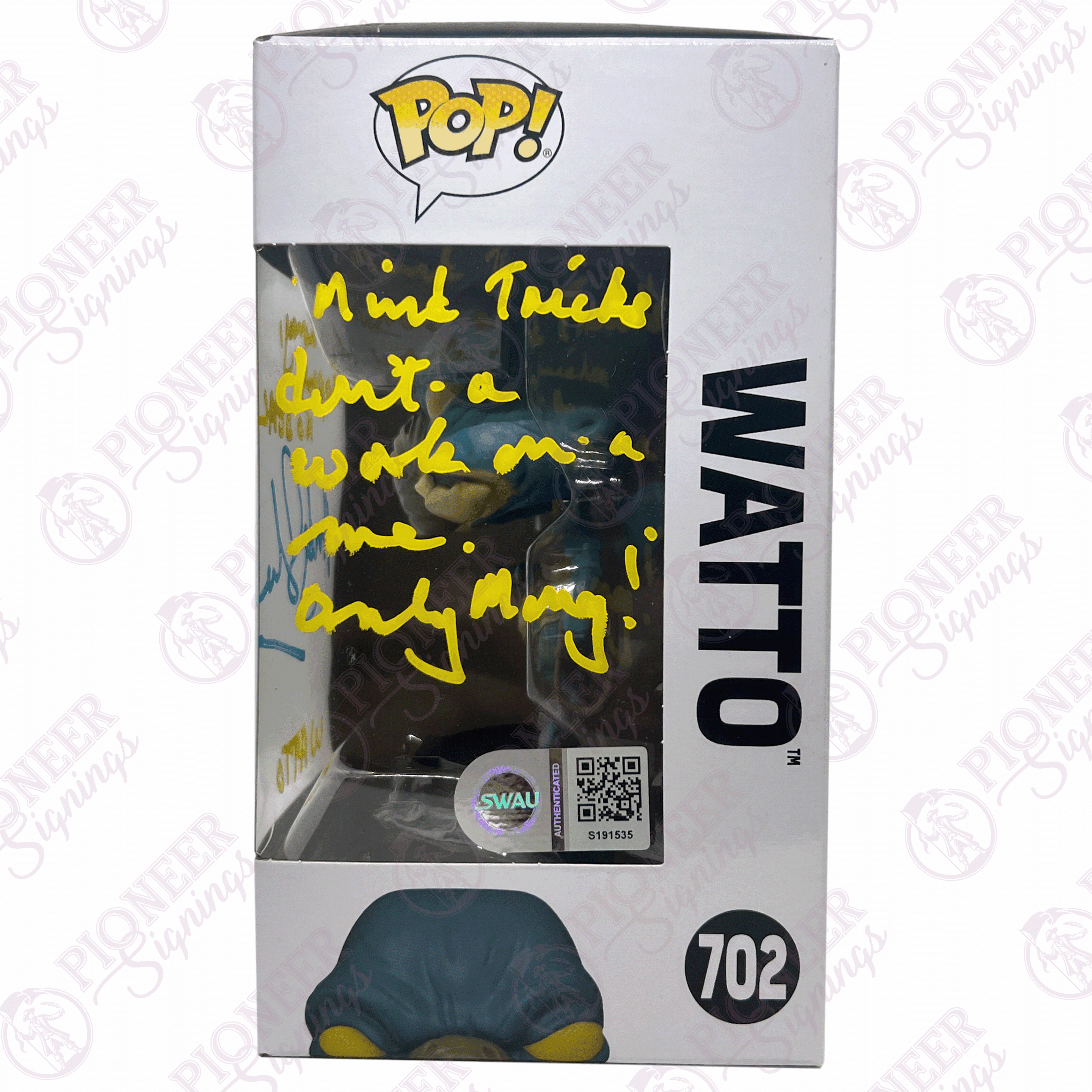 Star Wars: “Watto” Funko Pop with Character Name “WATTO” & Quote “No Money, No Parts, No Deal!” & “Mind Tricks don’t-a work on me, only Money!” in Blue & Yellow |