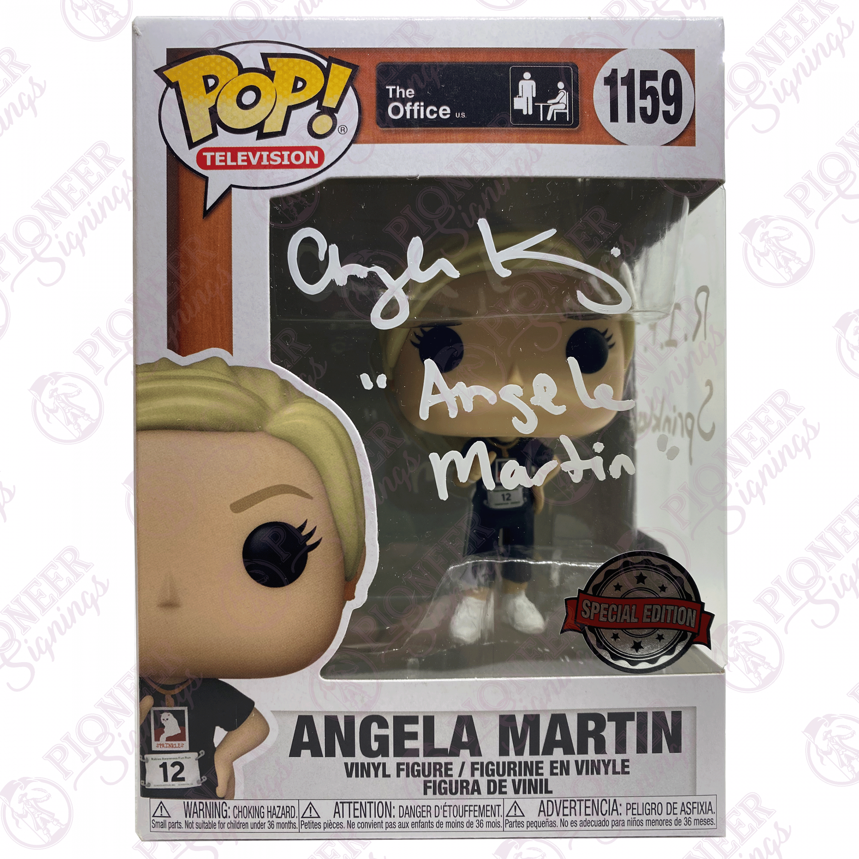 The Office ‘Angela Martin’ Funko Pop! 1159 Signed by Angela Kinsey with Quote – “R.I.P Sprinkles!” (White) +CoA |